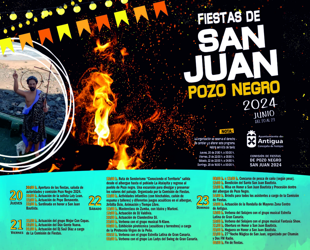 Pozo Negro celebra sus Fiestas de San Juan con Santo, Hoguera y Chamán • Pepe Benavente abre las Fiestas de Pozo Negro este jueves 20 de junio. • Pozo Negro ya cuenta con el Santo de San Juan Bautista, presente en Imagen y Forma, rindiéndole honores por primera vez con Bendición, Misa y Procesión. • […]