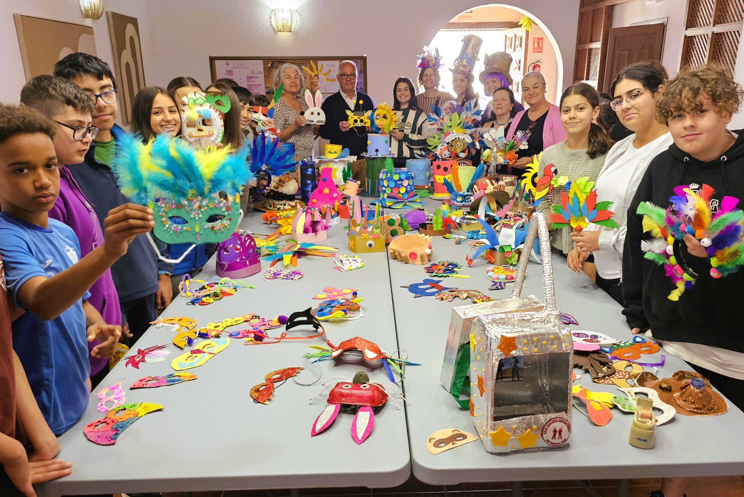 Este lunes 17 de febrero en el Centro de Mayores de Antigua, estudiantes de educación de Infantil, Primaria de centros de estudio en Ampuyenta, Betancuria, Valle Santa Inés, Triquivijate, El Castillo, Valles de Ortega y Antigua han dejado expuesto máscaras, sombreros y todo tipo de adornos carnavaleros hechos por ellos mismos y sus familiares, empleando material reciclable.