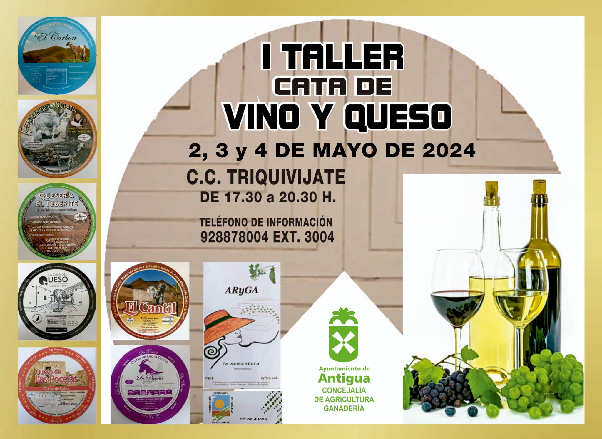 El I Taller de Iniciación a la Cata de Vino y Queso en Antigua, organizado por el Ayuntamiento de Antigua desde la concejalía de Agricultura, Ganadería y Pesca que dirige Fernando Estupiñán, ofrece una inscripción gratuita a toda persona interesada, con preferencia a aquellas empadronadas en el Municipio.