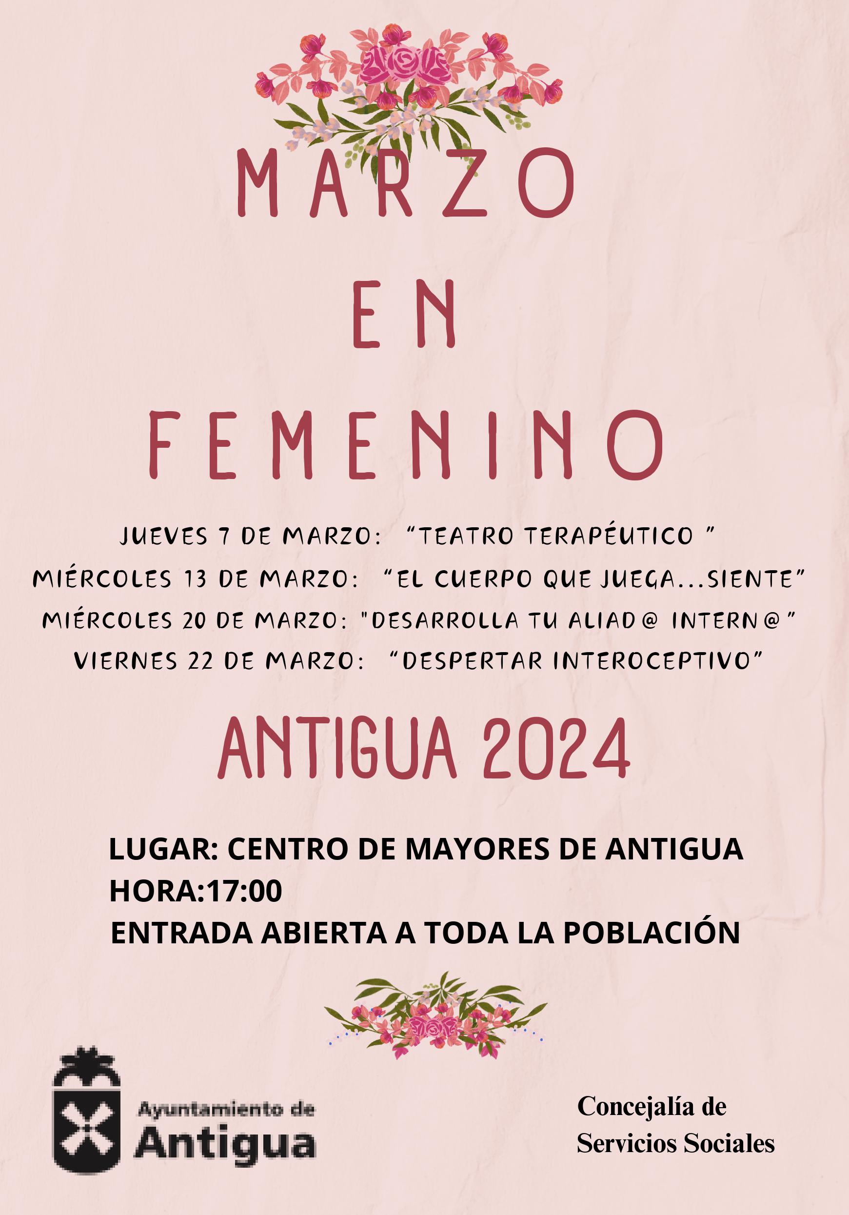 El Ayuntamiento de Antigua desde la concejalía de Servicios Sociales organiza un amplio programa de talleres durante el mes de marzo proponiendo un Marzo en Femenino.