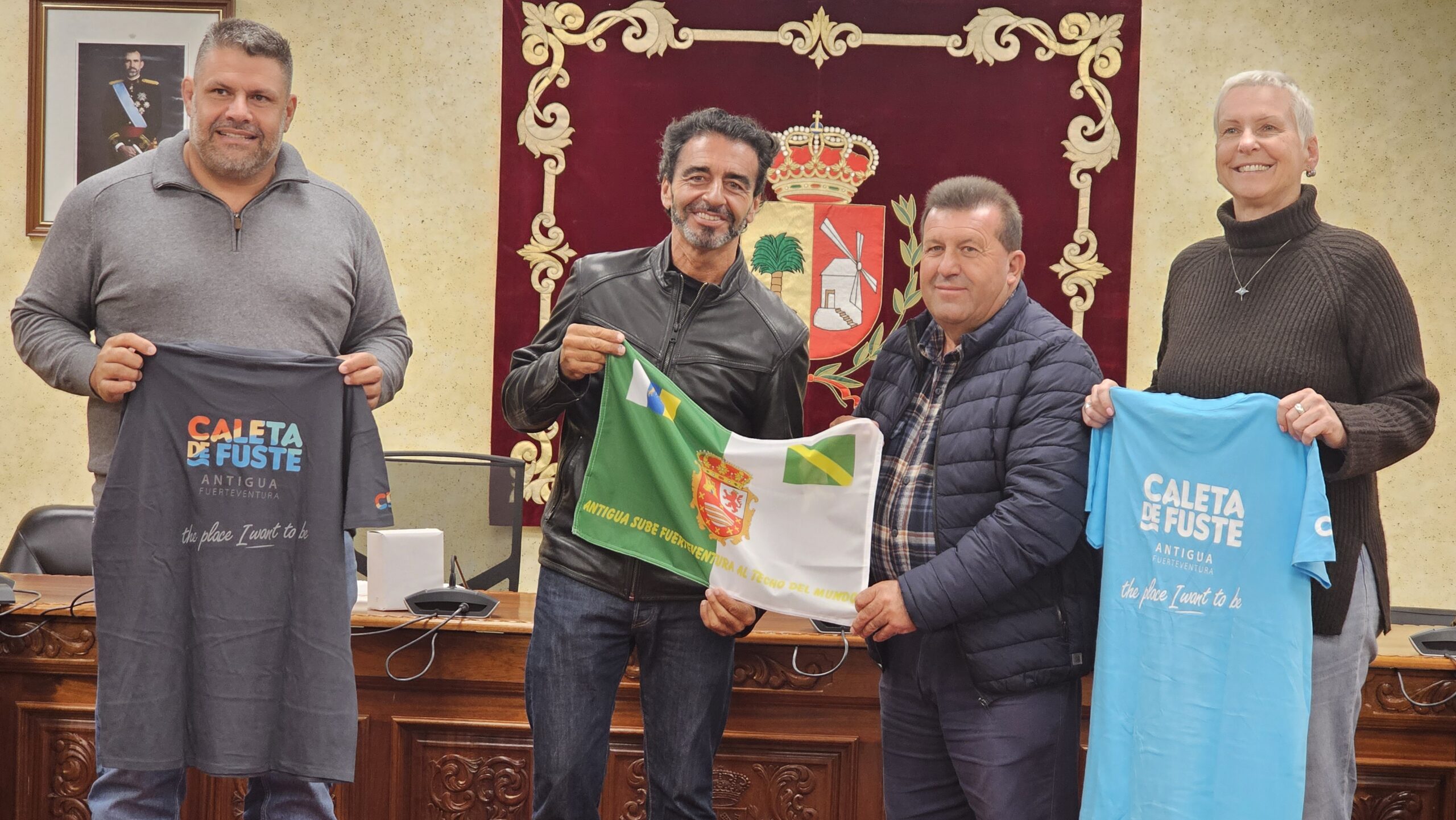 La concejala de Turismo, patrocinadora del alpinista, Kristina Rodewig y el concejal de Deportes, colaborador en el reto, Samuel Torres, con el alcalde han acompañado en esta presentación a Armando Placeres, quien en un gesto improvisado y muy bien recibido, ha invitado a los representantes de Antigua y profesionales de medios presentes, firmar la Bandera que seguro logrará fijar en la cima del mundo, el Everest.