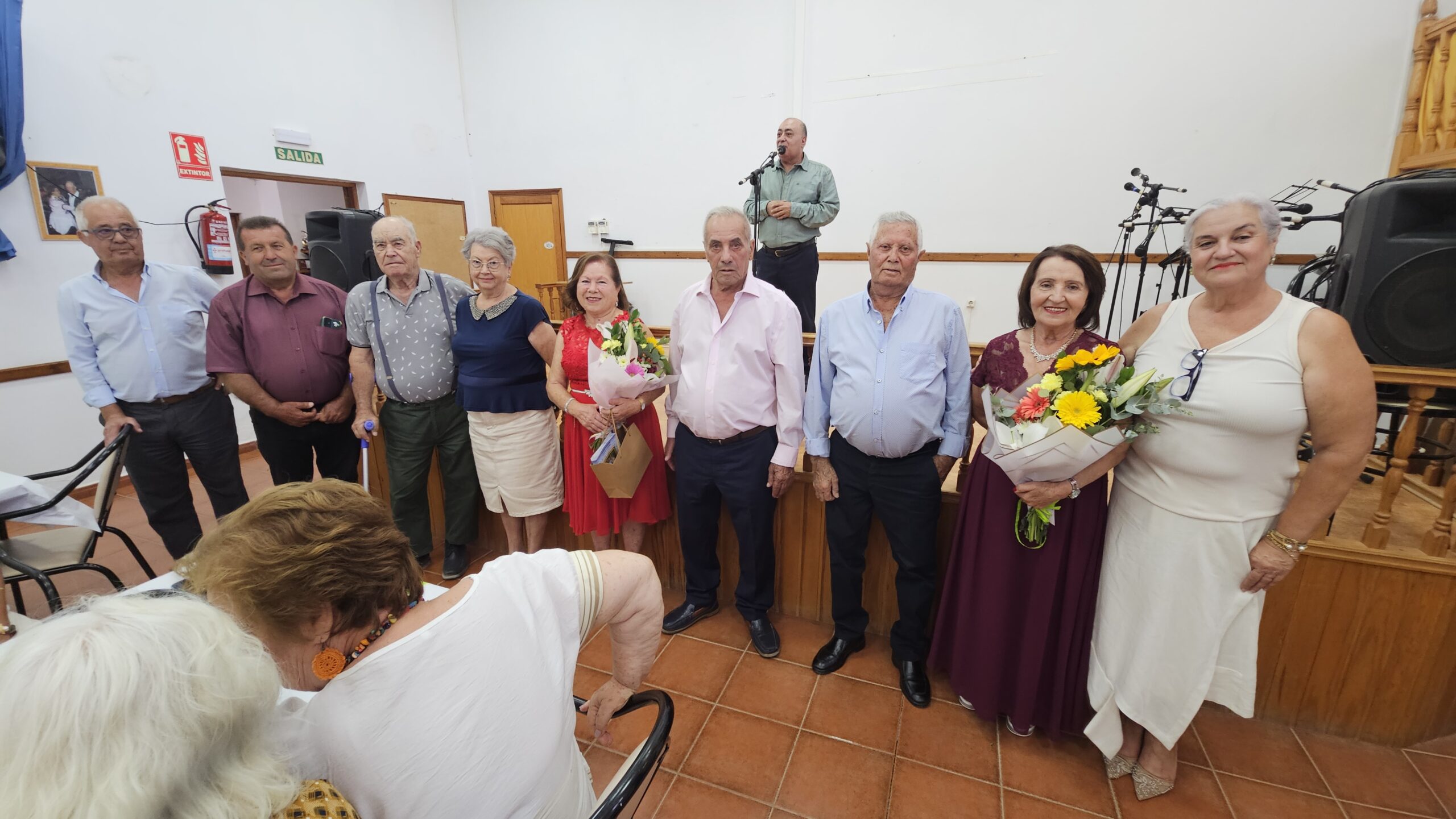 Los homenajeados felices de serlo, de estar rodeados de su familia, de ver a sus amistades y vecinos y compañeros de baraja y de vida aplaudiéndoles, abrazándoles y felicitándoles, simplemente por estar ahí y poder hacerlo.