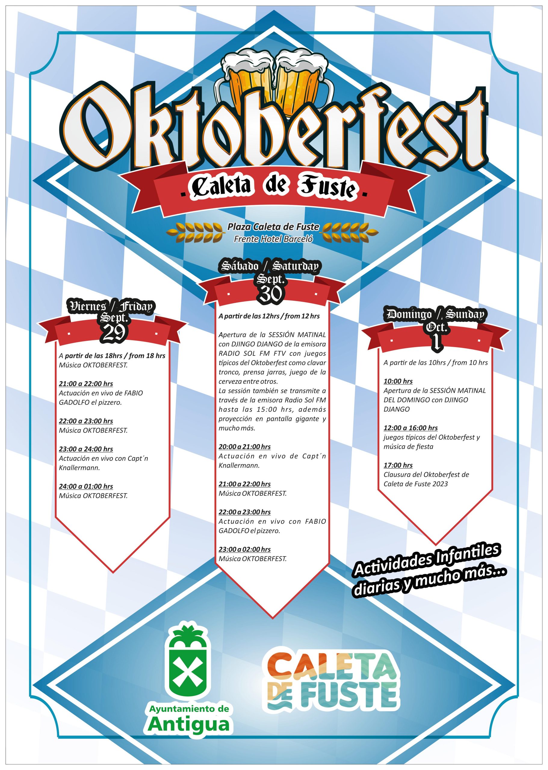 Protagonista de las mañanas el sábado y domingo será Djingo Django, y los juegos típicos y tradicionales del Oktoberfest.