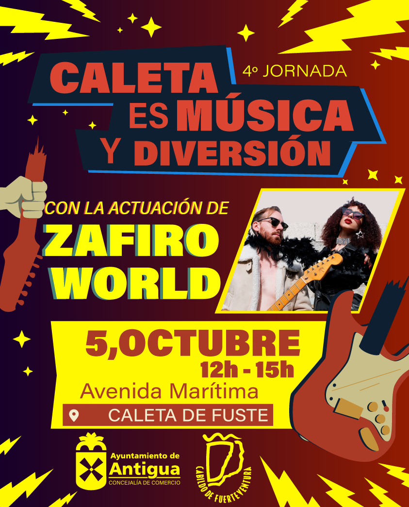 • Este sábado 5 de octubre en la avenida marítima de Caleta de Fuste de 12:00 a 15:00 horas, actuación de Zafiro World en la Avenida Marítima.