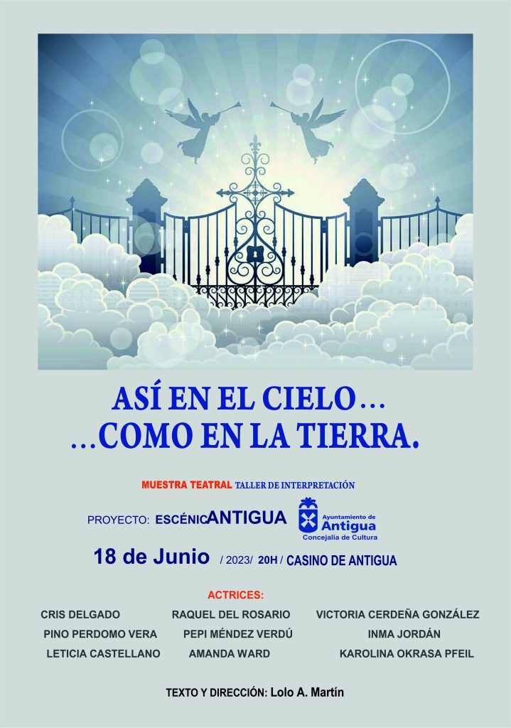 Teatro en Antigua con la obra Así en el cielo… como en la tierra • Los actores amateurs del Municipio inscritos en el Taller de Interpretación de Antigua ofrecen una muestra teatral este domingo 18 de junio a las 20:00 horas en el Casino.