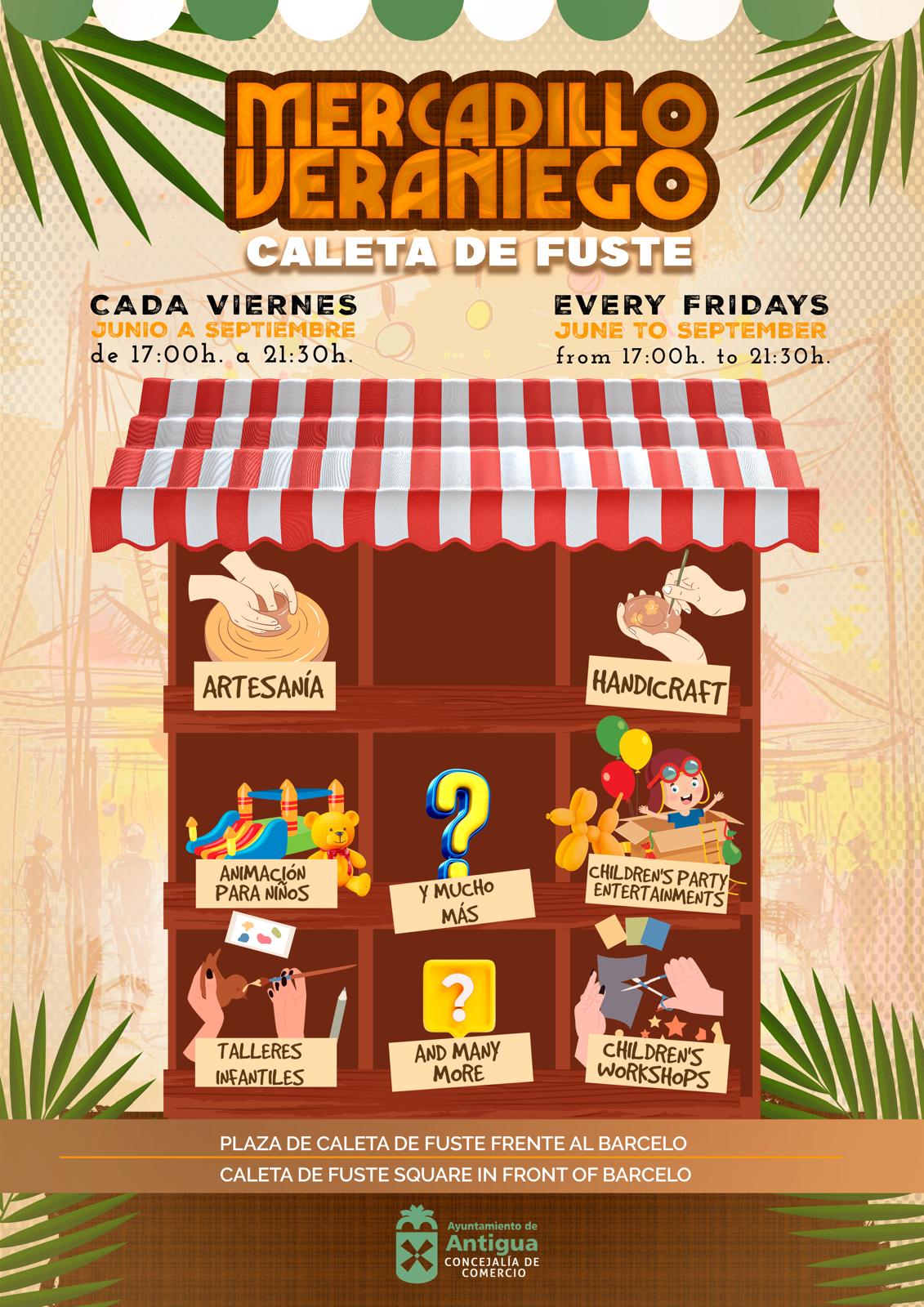 El Ayuntamiento de Antigua desde la concejalía de Comercio organiza un Mercadillo Veraniego todos los viernes de junio a septiembre en la plaza de El Castillo, proponiendo un amplío programa complementario de actividades para toda la familia en las horas más refrescantes de las tardes de verano hasta las 21:30 horas de la noche, explica el alcalde, Matías Peña.