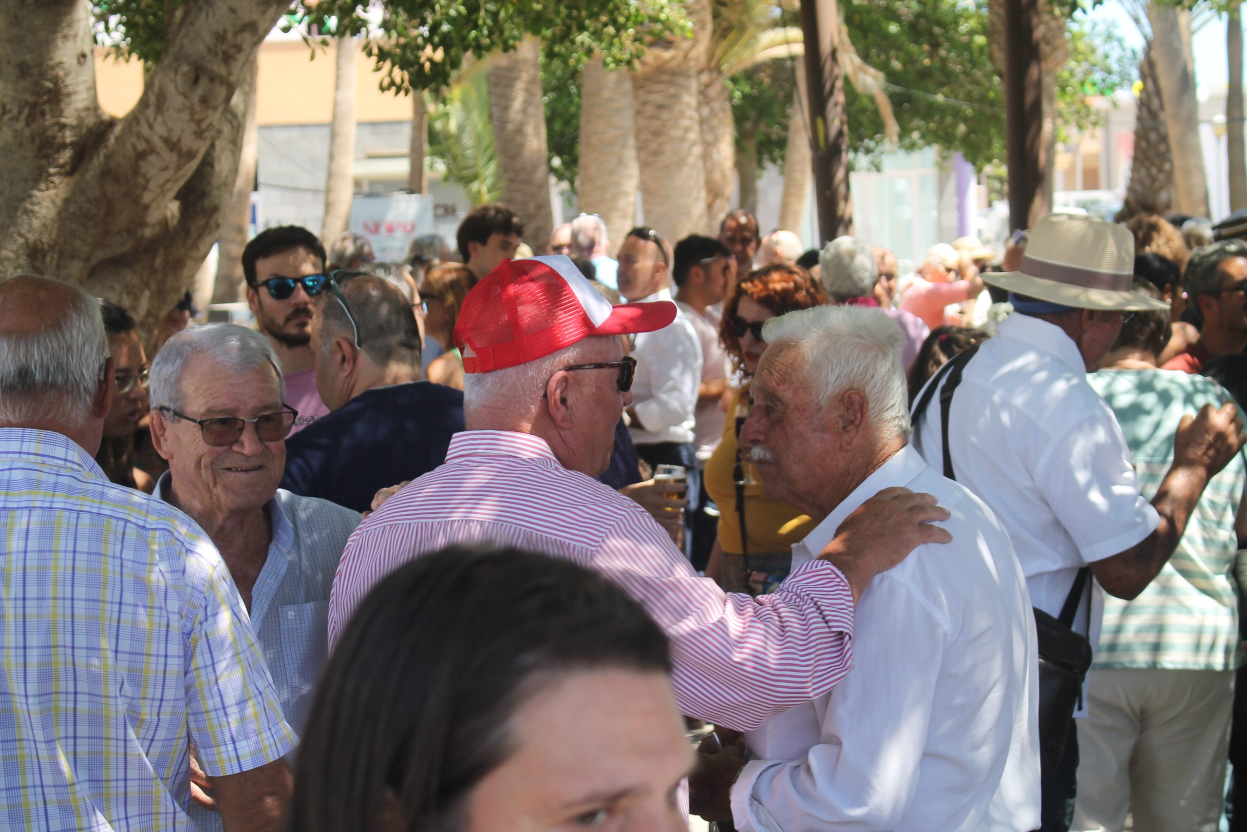 • La Banda de Agaete, en pie tras protagonizar con más de 200 personas la Diana Floreada a las cinco de la madrugada recorriendo las calles de Antigua, marca el ritmo también de un Vino de Honor este viernes al mediodía, que reúne vecinos, alcaldes, concejales, consejeros, directores, familias, pequeños, presidentas y todo aquel que apetece de compartir un final de fiestas, con un brindis al sol, entre copas de cristal y buena compañía.