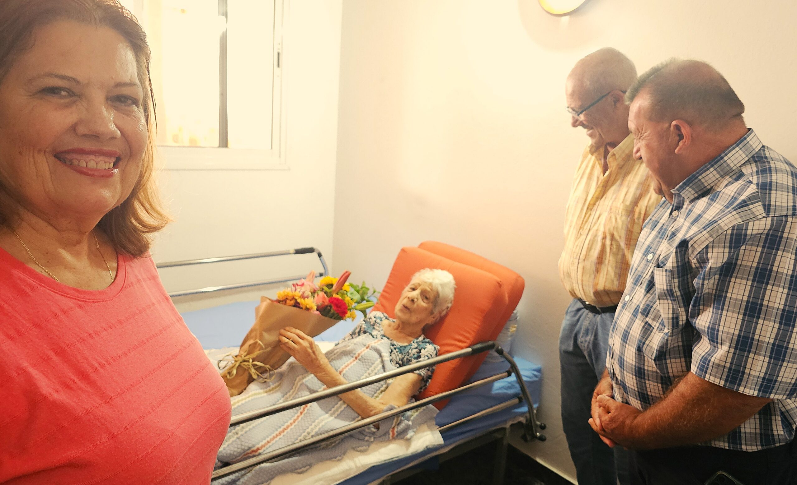 Doña María Dolores De la Asunción Curbelo Calero mantiene los rasgos de belleza y elegancia reconocidos tiempos atrás y admirados hoy, junto con una mirada atenta, de carácter firme que reconoce y recuerda los nombres de toda su familia desde la más chica al más grande.