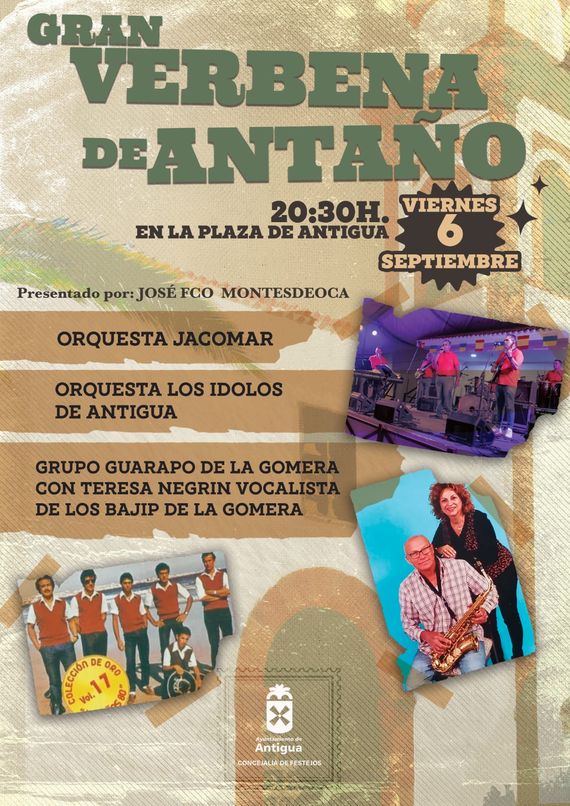 • El viernes desde las 20:30 horas en la Plaza de Antigua, divertida Verbena de Antaño con las actuaciones de las orquestas Jacomar, Los Ídolos de Antigua y el grupo Guarapo de La Gomera.