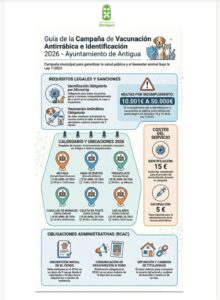 El Ayuntamiento de Antigua lanza la Campaña de Vacunación Antirrábica e Identificación 2026 • En abril con horario de mañana de 09:00 a 13:00 horas y de tarde 16:00 a 20:00 horas,