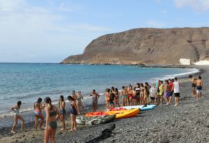 Estudiantes de Antigua disfrutan de las tablas de paddle y kayaks de la próxima Escuela Náutica en Pozo Negro