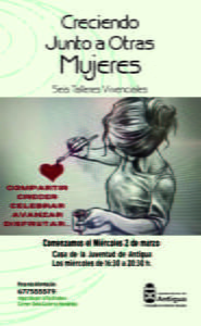 Abierta inscripción a los talleres vivenciales Creciendo Junto a Otras Mujeres El Ayuntamiento organiza seis talleres vivenciales de inscripción gratuita, que se impartirán los miércoles de 16:30 a 20:30 horas a partir