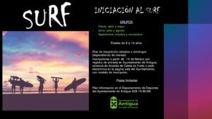 Antigua impulsa un Curso de Iniciación al Surf desde marzo a noviembre • Antigua refuerza con nuevos grupos los cursos deportivos más demandados como Pilates o el Entrenamiento Funcional que comienza a