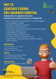 Antigua impulsa la formación digital para personas desempleadas • El Ayuntamiento de Antigua organiza diez cursos de inscripción gratuita, dirigidos a personas desempleadas, en el marco la programación formativa No te quedes