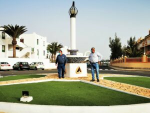 El Ayuntamiento embellece las rotondas de Costa de Antigua • Acondicionamiento de las rotondas de Costa de Antigua, embelleciéndolas con césped artificial.