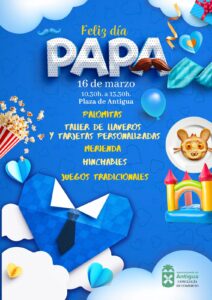Fiesta Familiar para celebrar el Día del Padre • Este domingo 16 de marzo desde las 10:30 y hasta las 13:30 horas, en la plaza de Antigua. • Palomitas gratis por el