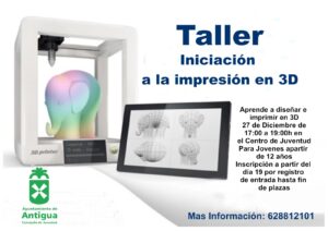Antigua organiza un Taller de Iniciación a la impresión en 3D • En sólo un año, Juventud de Antigua organiza medio centenar de talleres, actividades y encuentros para los jóvenes del Municipio.