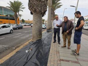 Un nuevo parterre ayuda a embellecer la mediana principal de palmeras en El Castillo • La poda del palmeral, el arreglo del parterre y la incorporación de plantas crasas embellece la mediana