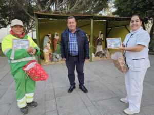 Los peques y sus familias reciclan y adornan de Navidad los árboles de Antigua