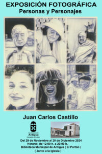 Antigua presenta la Exposición Fotográfica Personas y Personajes de Juan Carlos Castillo • Este viernes 29 de noviembre a las 12:00 horas en la Biblioteca Municipal El Portón, tendrá lugar la inauguración