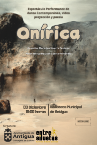 Antigua ofrece el espectáculo Perfomance de Danza Contemporánea Onírica • Este martes 3 de diciembre a las 19:00 horas en la Biblioteca Municipal de Antigua, El Portón. • Transgresor e innovador espectáculo