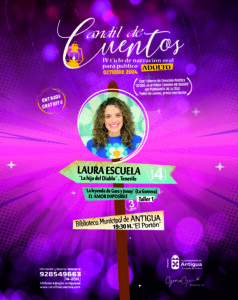 Comienza Candil de Cuentos con la narradora Laura Escuela y su historia La hija del diablo • El patio canario El Portón en la Biblioteca Municipal de Antigua se ilumina este viernes