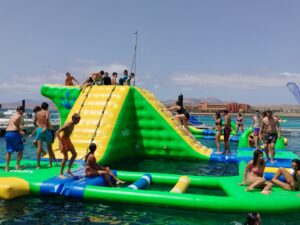 Una veintena de jóvenes disfrutan de juegos acuáticos en Caleta de Fuste