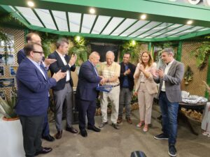 Antigua da a probar los sabores del Municipio en FEAGA 24 • Alcalde y concejal entregan una placa de reconocimiento al artesano carpintero y diseñador año tras año del stand de Antigua,
