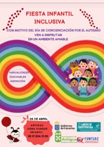 Fiesta Infantil Inclusiva en Antigua este viernes Antigua colabora con Funteac con motivo del Día de Concienciación por el Autismo • Antigua colabora con Funteac en la organización de una Fiesta Infantil