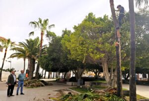 Poda artesanal para embellecer el palmeral de la Plaza de Antigua • El Ayuntamiento desde la concejalía de Parques y Jardines embellece la Plaza de Antigua con la poda artesanal de palmeras.