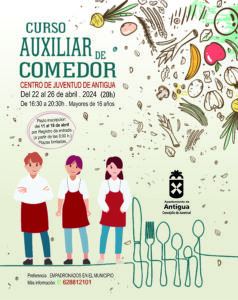Juventud Antigua organiza el Curso Auxiliar de Comedor • El Curso es homologado y abre una alternativa laboral o de apoyo a jóvenes estudiantes, a partir de los 16 años. • La
