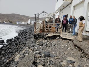 El Ayuntamiento de Antigua interviene en las zonas costeras más afectadas • El alcalde, Matías Peña, muestra a la presidenta del Cabildo de Fuerteventura, Lola García, los destrozos en paseos o inundaciones