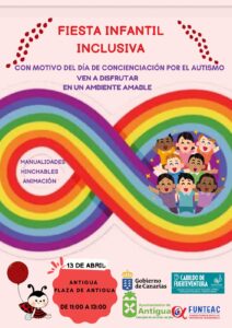 Fiesta Infantil Inclusiva en la Plaza de Antigua este sábado • Antigua colabora con Funteac en la organización de una Fiesta Infantil con motivo del Día de Concienciación por el Autismo. •