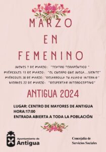 Antigua organiza seis Talleres de Crecimiento Personal Femenino • Plazas limitadas e inscripción gratuita desde este lunes 11 de marzo por Registro de Entrada en Ayuntamiento de Antigua, Tenencia de Alcaldía en