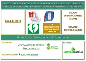 Curso formativo y gratuito sobre el Uso de Dispositivos de Desfibrilación Semiautomática • Deportes de Antigua organiza un curso abierto y gratuito para toda persona con interés en saber utilizar un Dispositivo