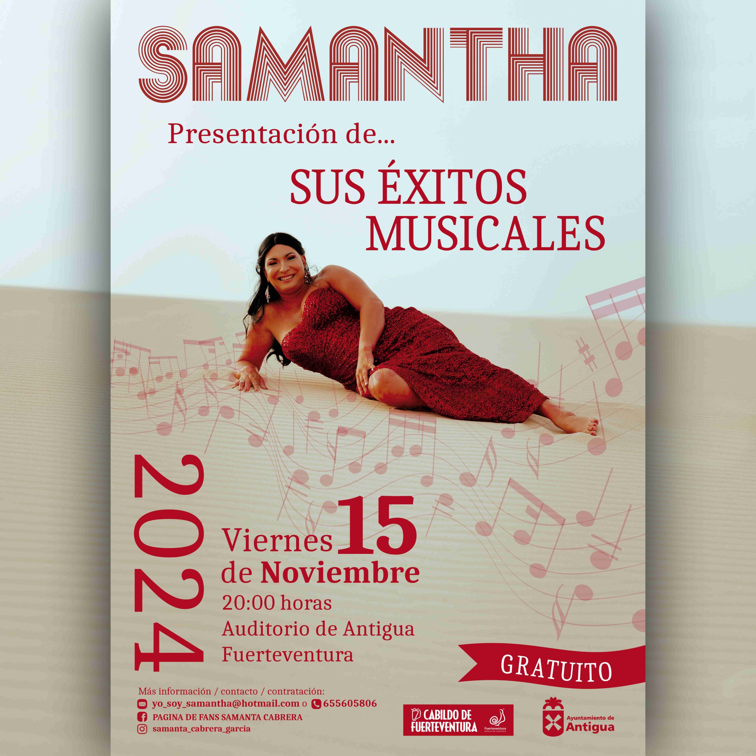 • Entrada gratuita a la nueva presentación de éxitos musicales de Samantha, artista residente en el municipio.