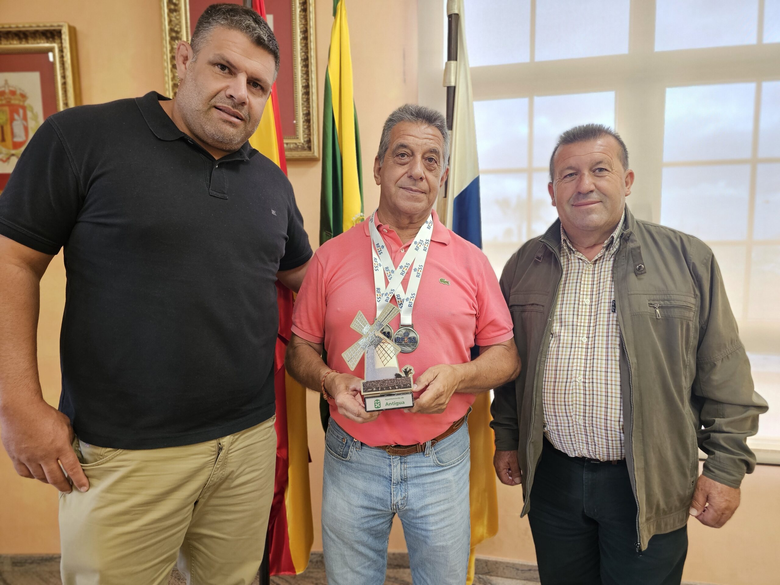 • El alcalde y concejal felicitan al varias veces medallista nacional, que será ponente final en las Jornadas de Deporte y Salud que se celebran este viernes 14 y sábado 15 en Caleta de Fuste.