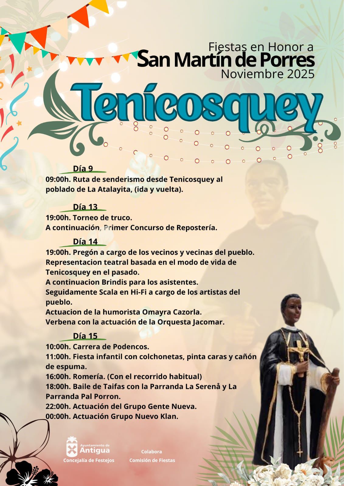 Tenicosquey celebra este fin de semana los actos principales de sus Fiestas en honor a San Martín de Porres, organizadas por el Ayuntamiento de Antigua desde la concejalía de Festejos con la colaboración de la Comisión de Fiestas.