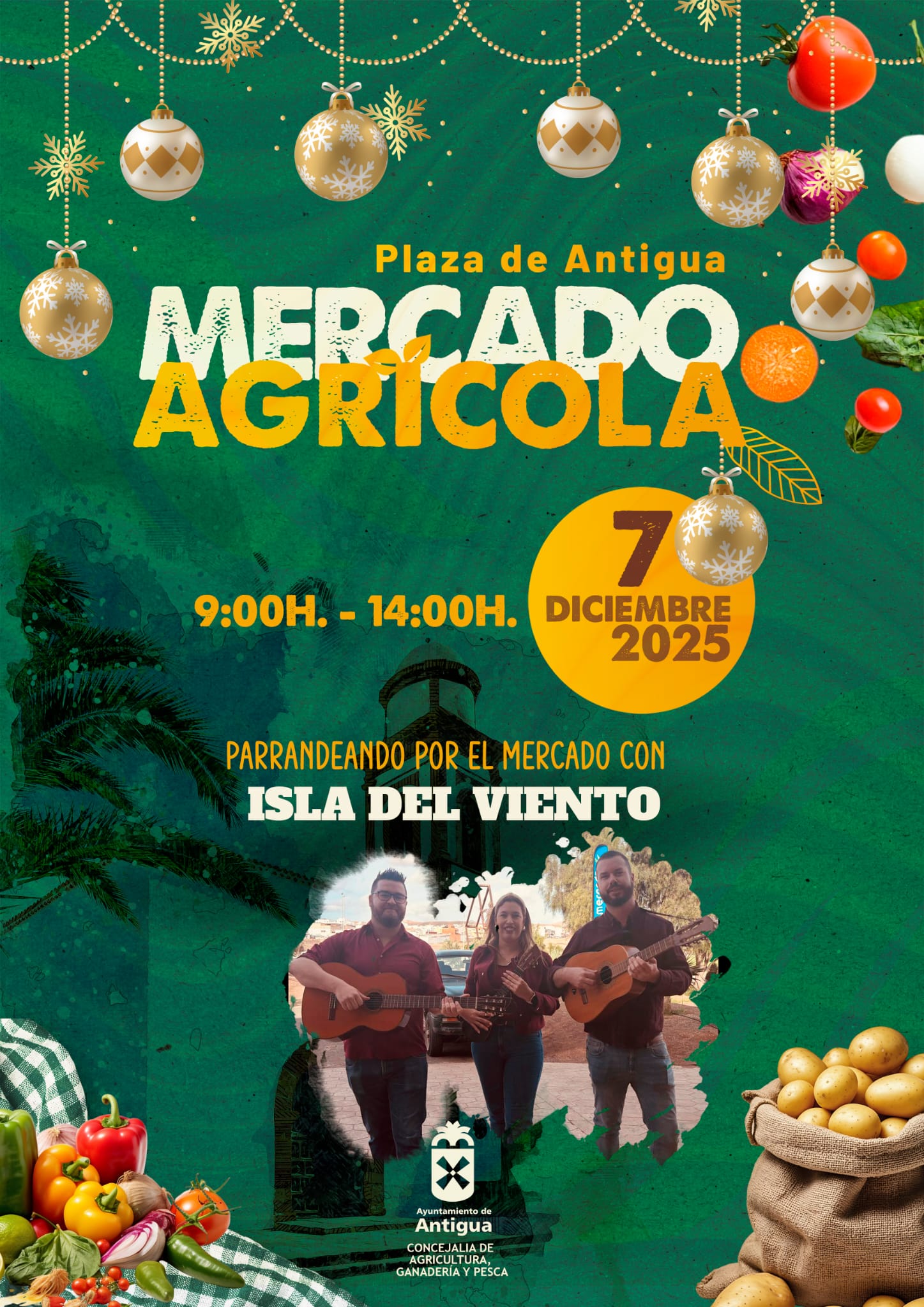 • Este domingo 7 de diciembre de 09:00 a 14:00 horas el producto local más cercano, fresco y de mejor calidad en una plaza de Antigua muy navideña, y con la compañía musical de la parranda Isla del Viento.