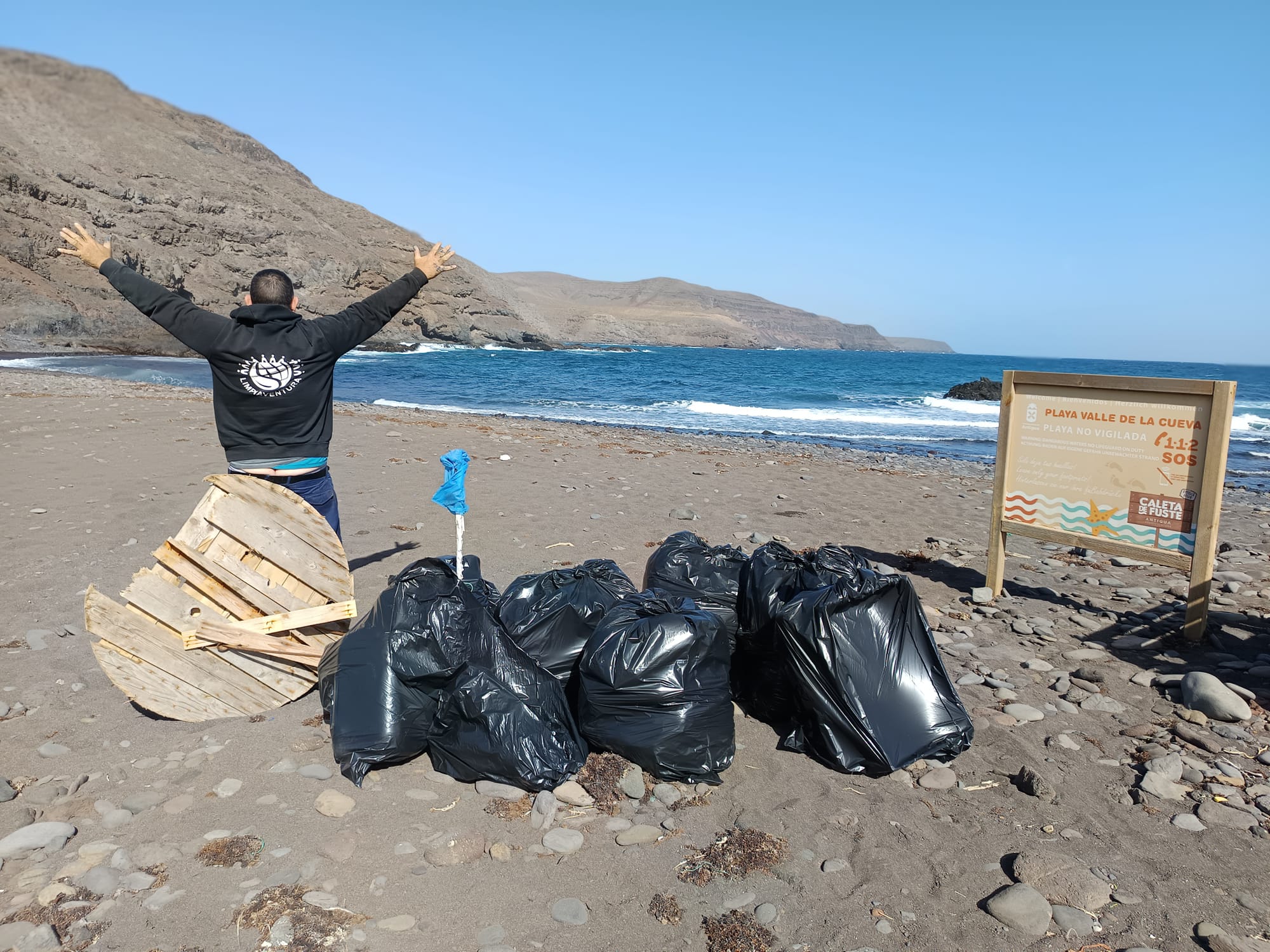 Los voluntarios de Limpiaventura demuestran su compromiso medioambiental en cada salida que realizan, en actuaciones que requieren gran esfuerzo personal y en las que colaboramos en lo que nos solicitan, señala el concejal, aportando desde la concejalía sacos de basura, contenedores, facilitando la logística que precisen y recogiendo la basura retirada y acumulada en puntos señalados.