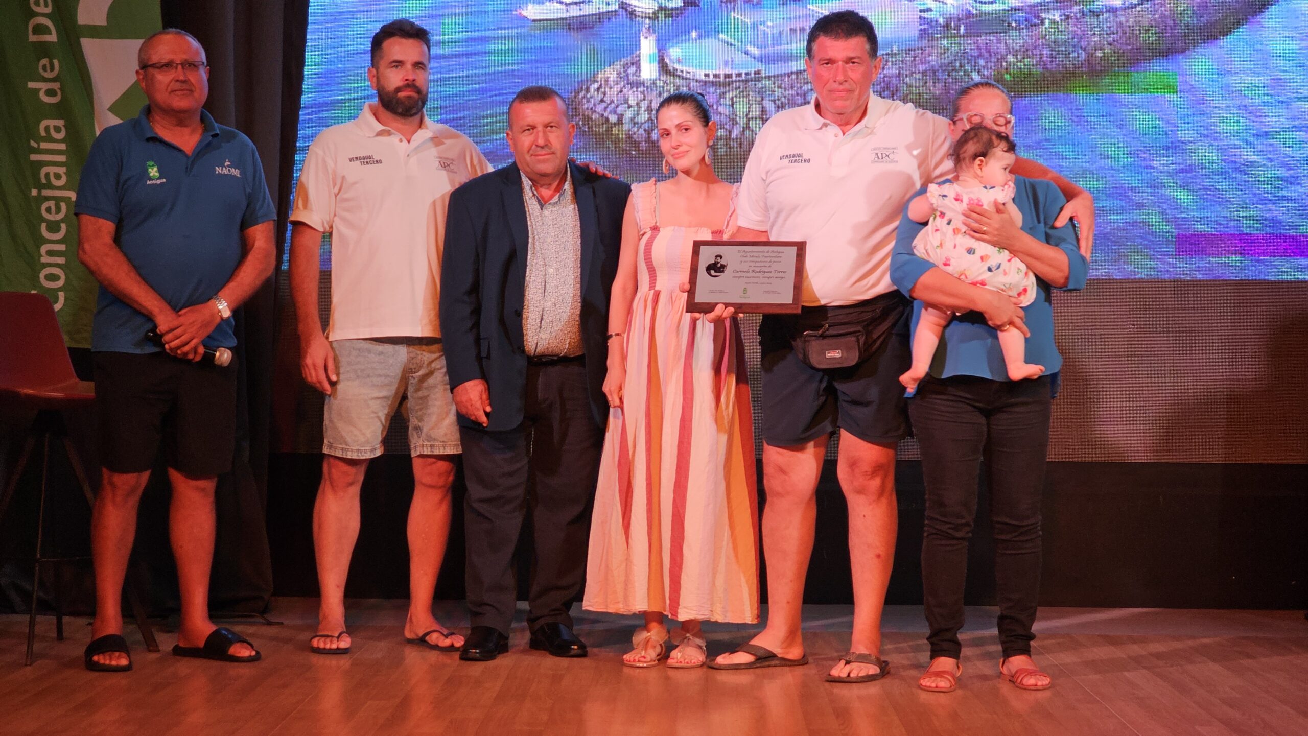 La ceremonia de entrega de trofeos contó con la presencia del acalde, Matías Peña García y el concejal de Deportes Samuel Torres, que con los representantes del Club Míralo Fuerteventura, iniciaron el acto con un Reconocimiento póstumo al joven marinero, siempre participante en el Torneo de Pesca de Altura Puerto Castillo, Carmelo Rodríguez Torres, recogiendo sus familiares la placa entregada por el regidor municipal, momento acompañado por un caluroso y largo aplauso de todos los asistentes.